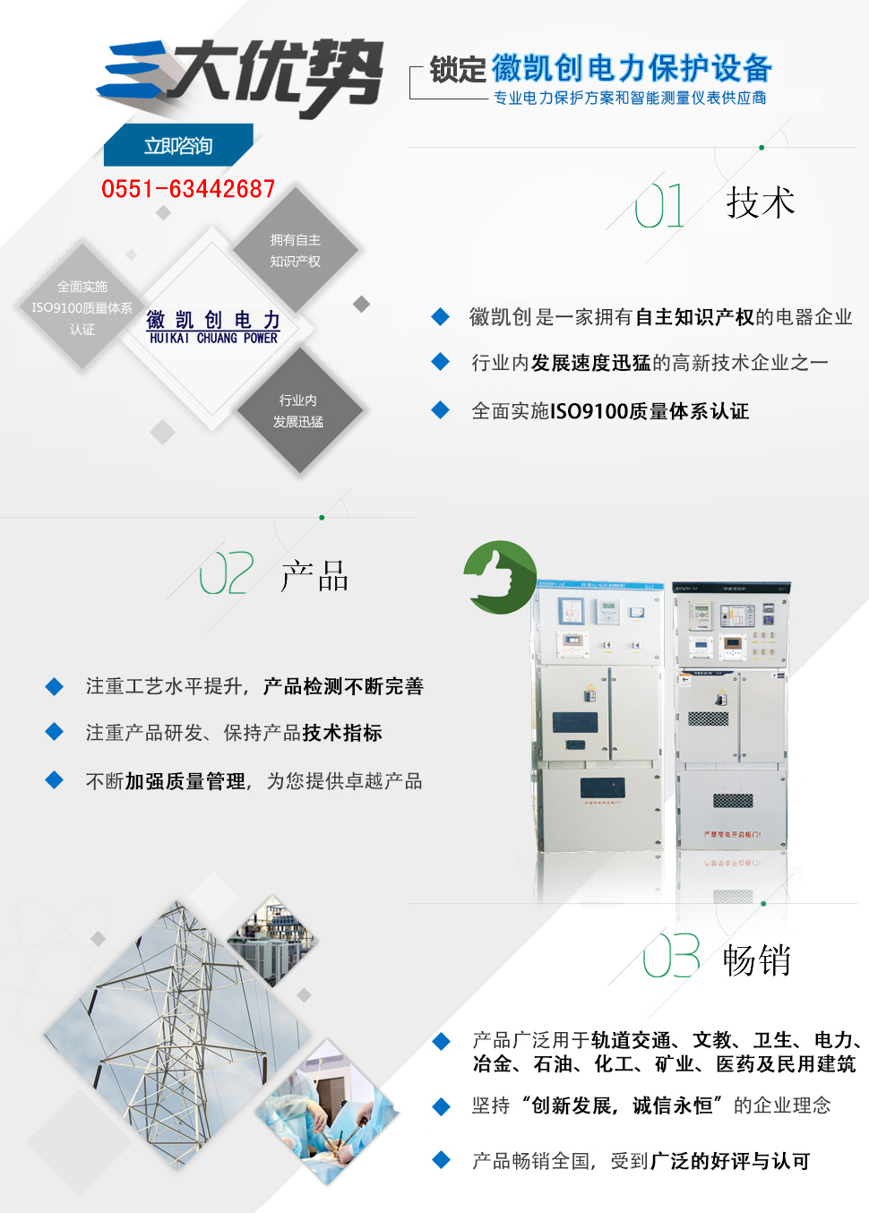 隨著國家電力事業(yè)的高速發(fā)展,安徽徽凱創(chuàng)電力保護設備有限公司始終堅持技術領先、提供個性化設計方案,為客戶量身定制卓越的產品。真誠與電力、電氣行業(yè)協(xié)作,共創(chuàng)美好未來。